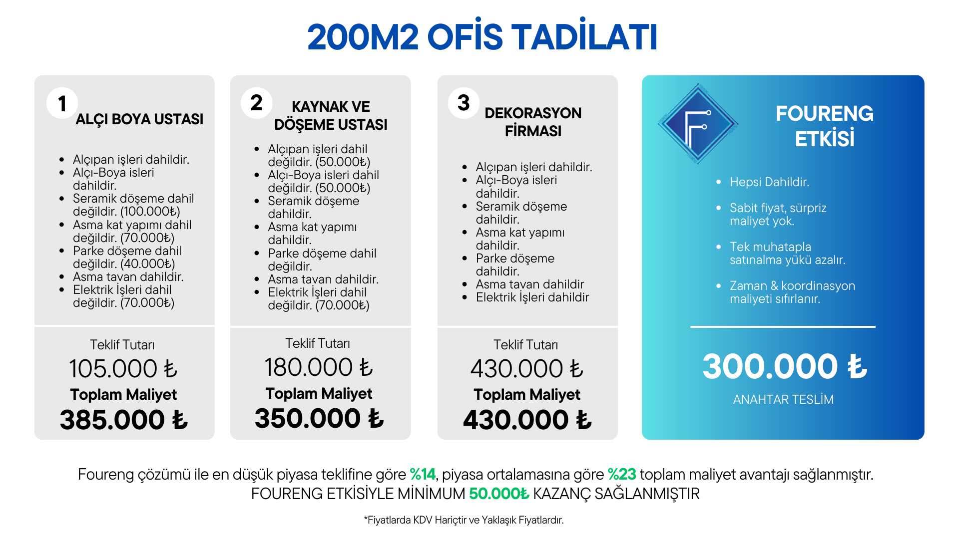 Bu projede Foureng sadece daha düşük fiyat vermedi, aynı zamanda:
