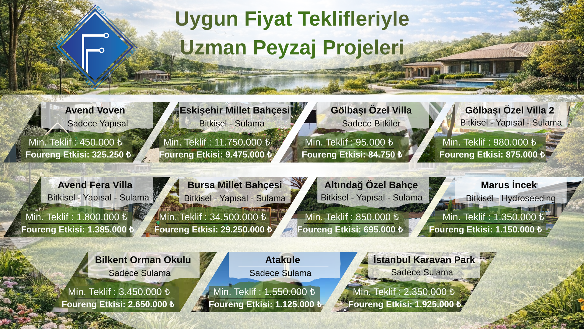 FOURENG, peyzaj ve sulama sistemleri tedarik sürecinde; yalnızca uygulama bedelini değil, uzun vadeli bakım ve işletme maliyetlerini dikkate alarak fiyat teklifi oluşturur. Bu yaklaşım, uygulama sonrası revizyon ve ek iş risklerini minimize eder.